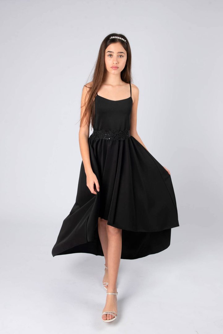 שמלת טוקסידו אלגנטית ונעימה לגוף עם כתפיות דקות מתכווננות.