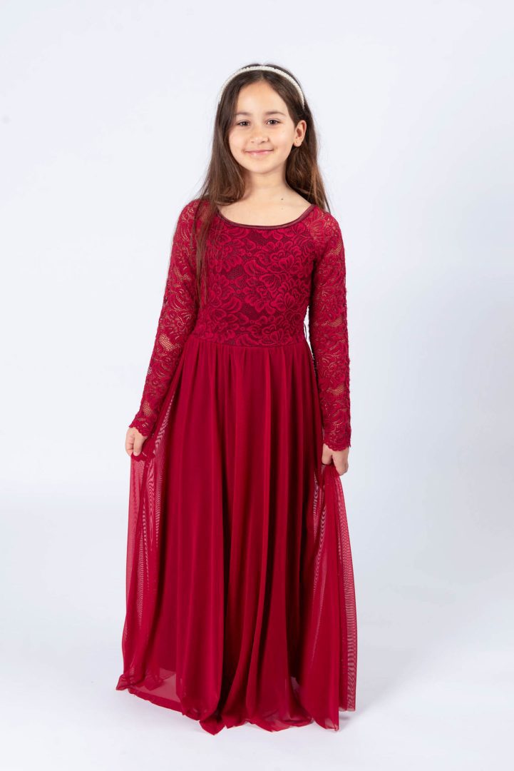 שמלת שיפון מקסי עם מחוך תחרה אטום. שרוולים ארוכים למראה צנוע.